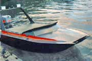 Here we have Sea Otter which uses a tunnel bottom design for stabilty and speed. It was shipped to Boston to be used as a tender for a 41' pleasure vessel. The ablity to endure severe abuse, (rocky shorelines, oyster covered beaches, and heavy seas) makes aluminum dinghies a great choice for the serious